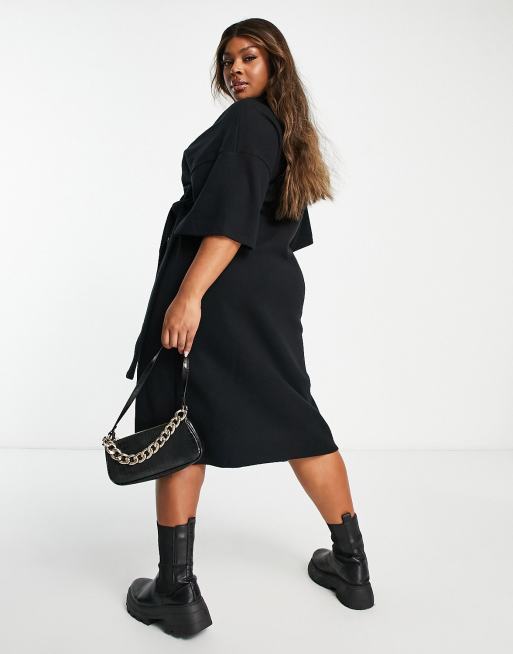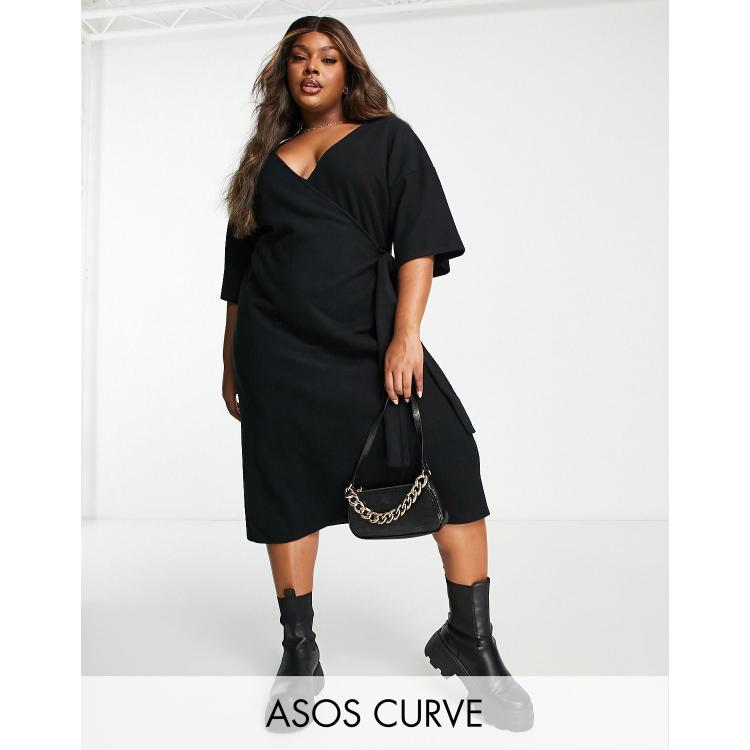 Asos Design Curve Super Soft Wrap Sweater Dress With Belt In Black Asos